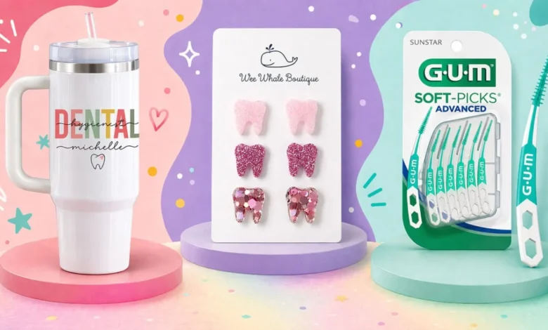 1. Personalized Dental-Themed Tumbler: Recognizing the physically demanding nature of dental hygiene work, which often involves long hours in a clinical setting, this item addresses the practical need for hydration while incorporating a personalized aesthetic that celebrates the clinician’s specific career path.